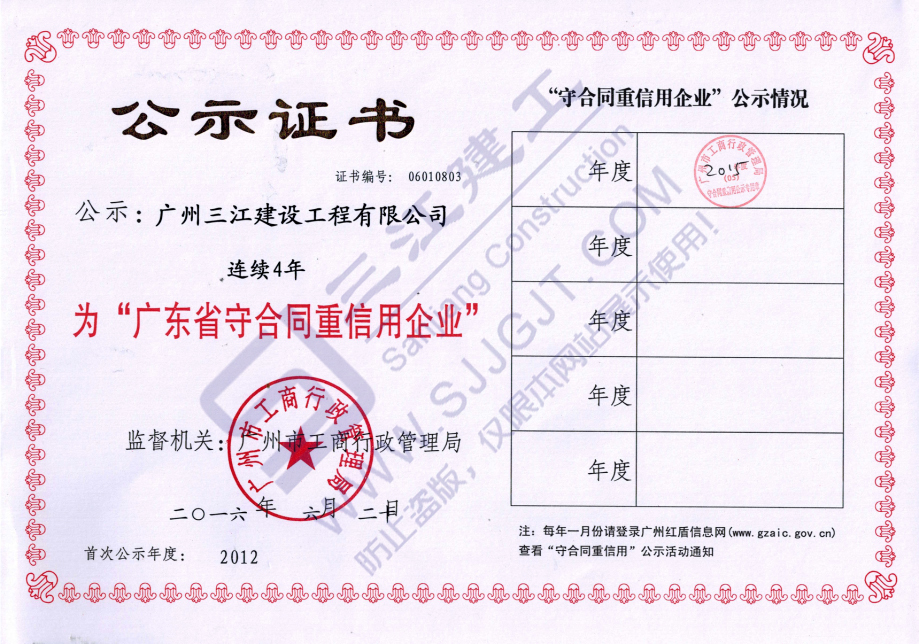 連續(xù)4年被廣州市工商行政管理局評(píng)為“廣東省守合同重信用企業(yè)”